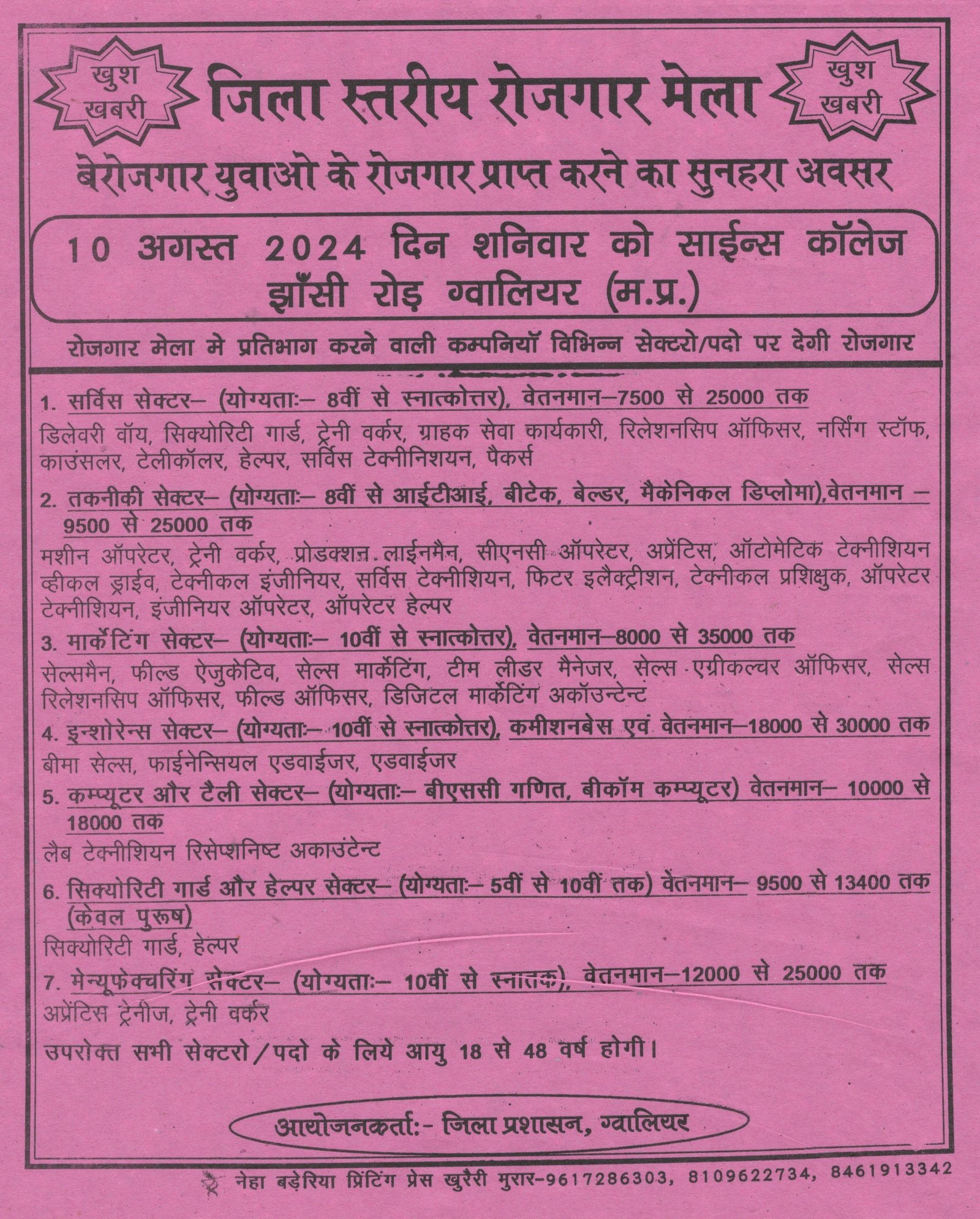 जिला स्तरीय रोजगार मेला के संबंध में सूचना