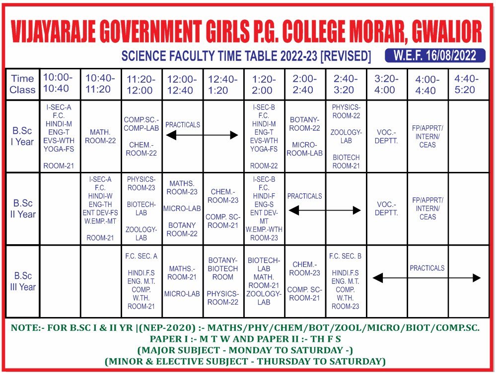 SCIENCE FACULTY TIME TABLE SESSION 2022-23