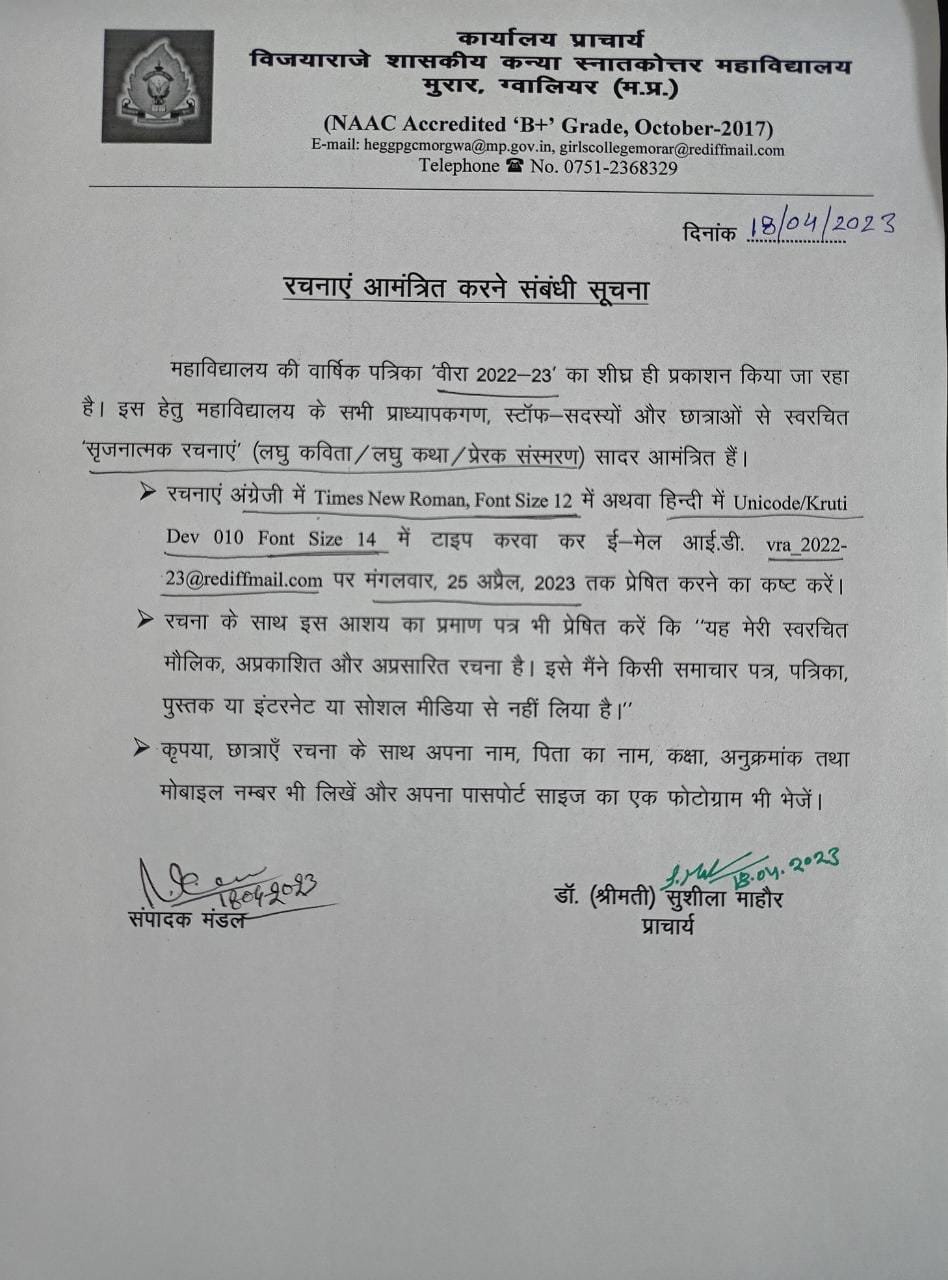 रचनाएं आमंत्रित करने संबंधी सूचना